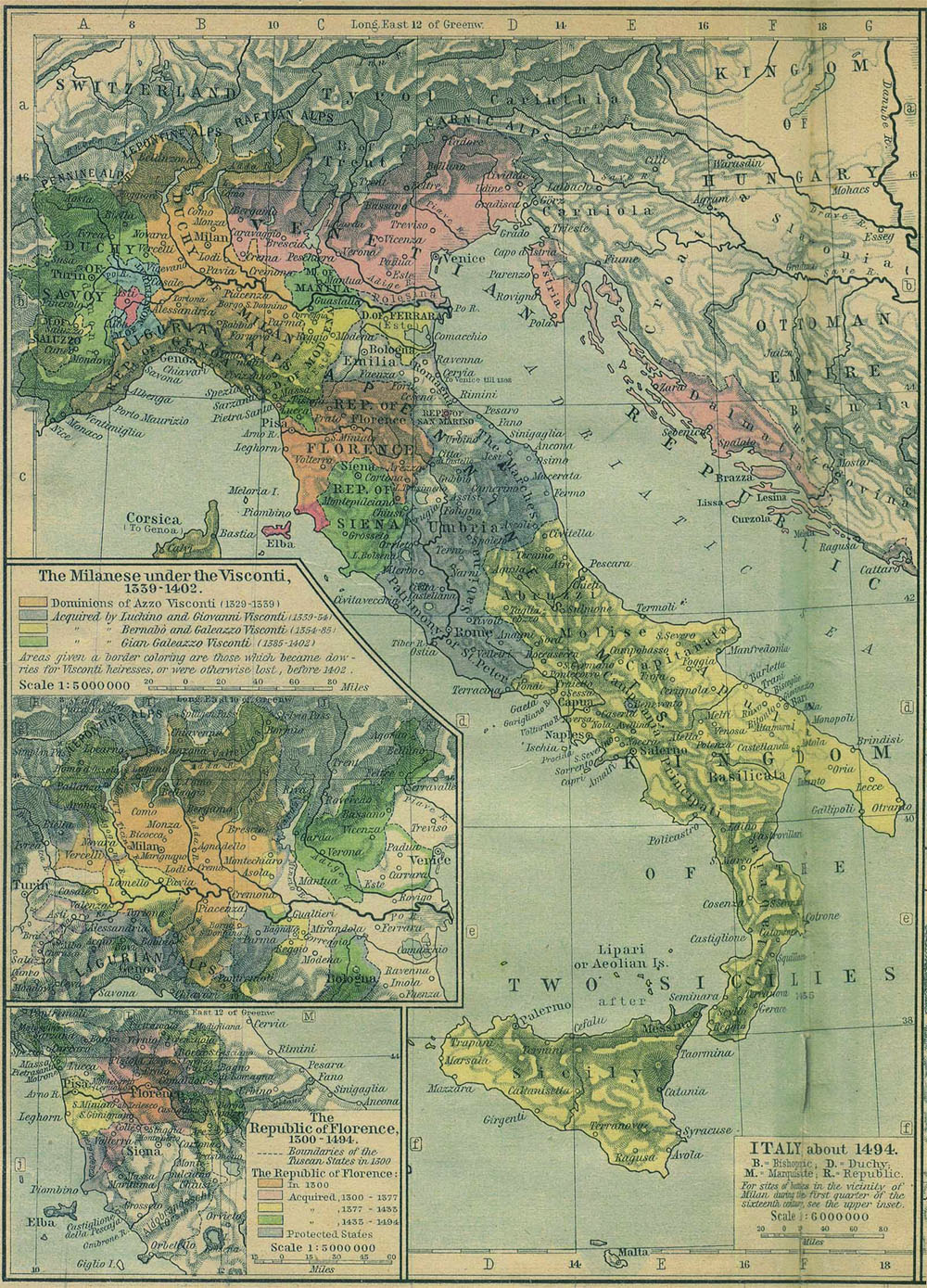 Cartes historiques de l’Italie Histoire de Rome Laisser un commentaireL’Italie en 1234, carte du XIXe siècleL’Italie en 1494, carte du XIXe siècle