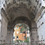 Il était couronné d’une autre structure, peut-être une pyramide, en briques, qui fut démolie en 1827 car elle fut considérée à tort comme une construction du moyen-age incluse dans la forteresse des Frangipani. Ces derniers avait en effet fermé les passages de l’arc.