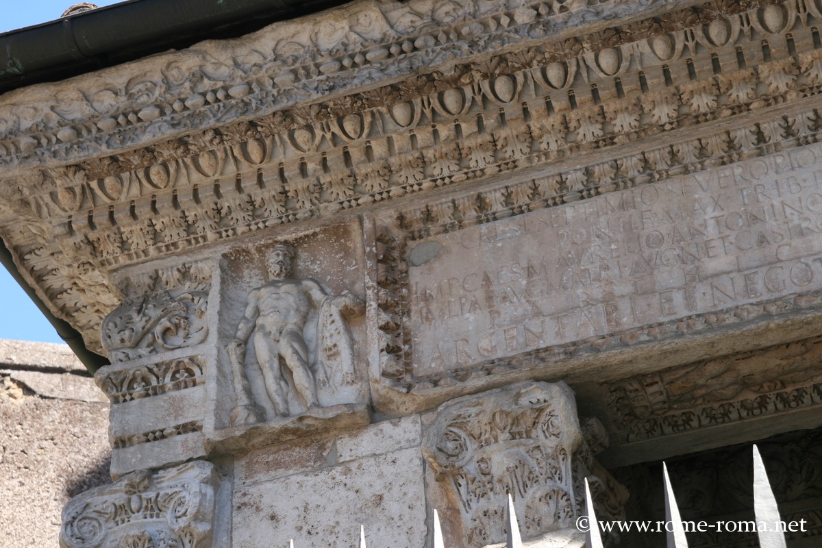 Il portico è sostenuto da quattro colonne ioniche e negli angoli da quattro colonne del VII secolo. L’architrave reca un’iscrizione del XIII secolo.