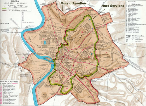 C’era già una cinta muraria, le mura serviane, costruite sotto la Repubblica e che circondavano le sette colline storiche, ma la città si era sviluppata molto oltre.
