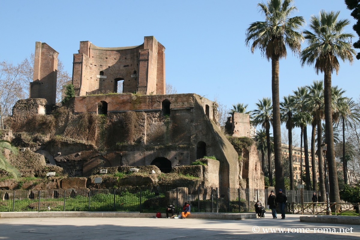 Au centre de la place, dans le jardin Nicola Calipari, se trouvent les vestiges d’une fontaine monumentale romaine datant du IIIe siècle après J.-C., le Nymphée d’Alexandre (Ninfeo di Alessandro Severo en italien). Cette fontaine était ornée des Trophées de Marius, deux groupes sculptés en marbre représentant des trophées, transférés au XVIe siècle sur la Place du Capitole pour décorer la balustrade en haut de l’escalier. D’ailleurs, les vestiges de cette fontaine ont longtemps été appelés Trophées de Marius (Trofei di Mario en italien).