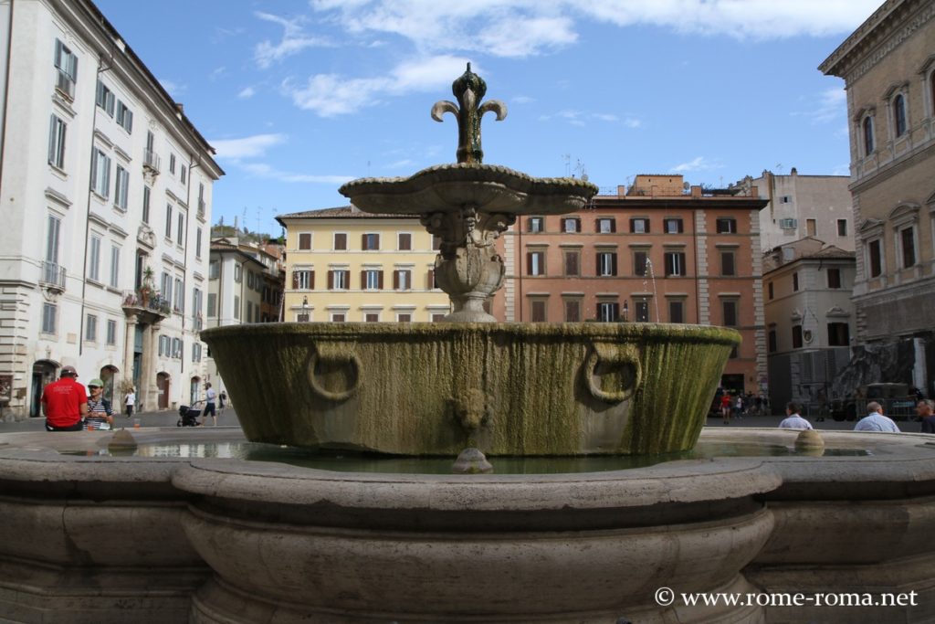 La place fut pavée de briques en 1545, et pour l’embellir fut installée par Paul III la même année en face de son palais une des deux baignoires de granit égyptien que l’on voit aujourd’hui, qui se trouvaient à l’origine dans les Thermes de Caracalla. Il n’y avait à l’époque pas d’alimentation suffisante en eau pour créer une fontaine. En 1580, fut amené le deuxième bassin qui avait été placé place Saint-Marc.