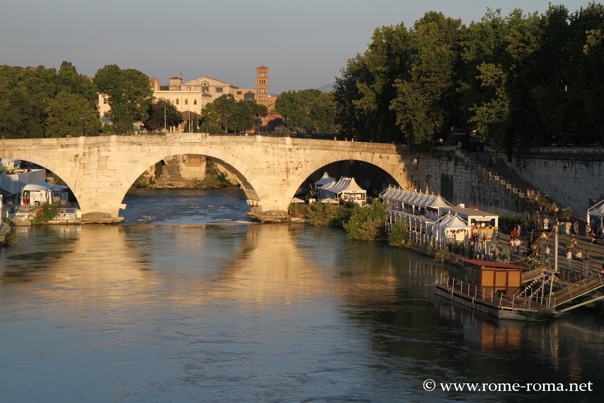 Le Pont Cestius relie l’île Tibérine au Trastevere. Sa construction remonte à l’an 46 avant notre ère, probablement par Lucius Cestius, lorsque César le laissa gouverner Rome pendant la guerre d’Espagne. Il est long de 85 mètres, large de 8, recouvert de travertin issu en partie du théâtre de Marcellus. L’intérieure est en tuf, et les parapets en marbre.