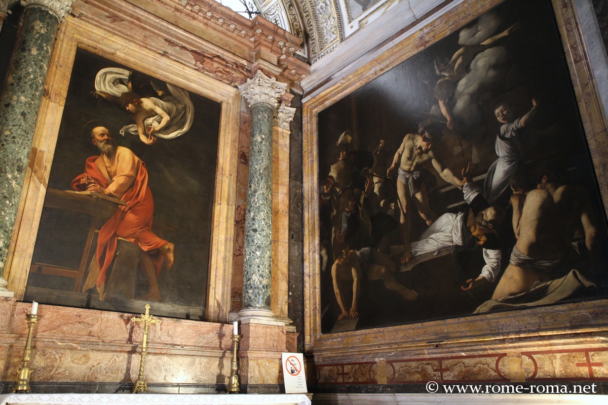 C’est dans la cinquième chapelle de gauche, la chapelle Contarelli, que se trouvent trois chefs-d’œuvre de Caravage: Le Martyre de saint Matthieu (1601), Saint Matthieu et l’ange (1602) et la Vocation de saint Matthieu (1601).