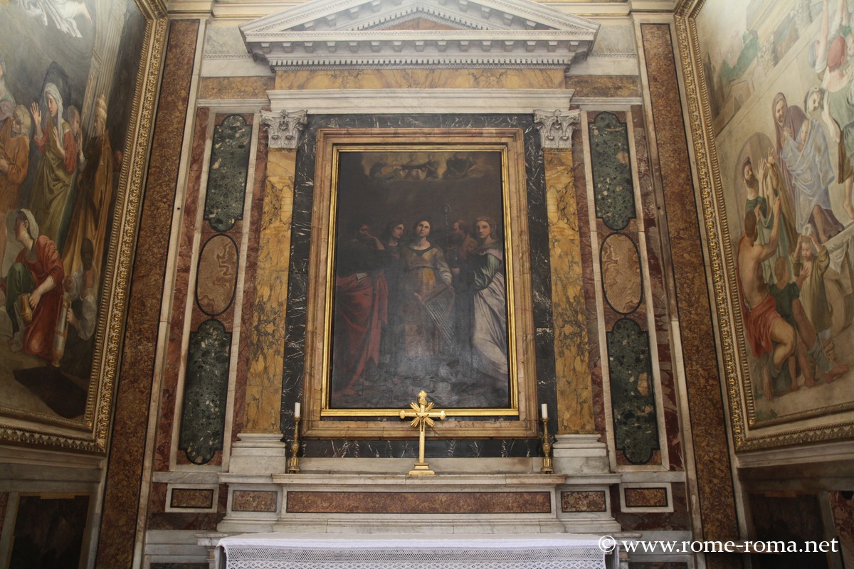Dans la chapelle Sainte Cécile, des fresques du bolonais Dominiquin représente des passages de l’histoire de Sainte-Cécile (1616-1617), et sur l’autel est exposé une copie de la Sainte Cécile de Raphaël réalisée par Guido Reni.