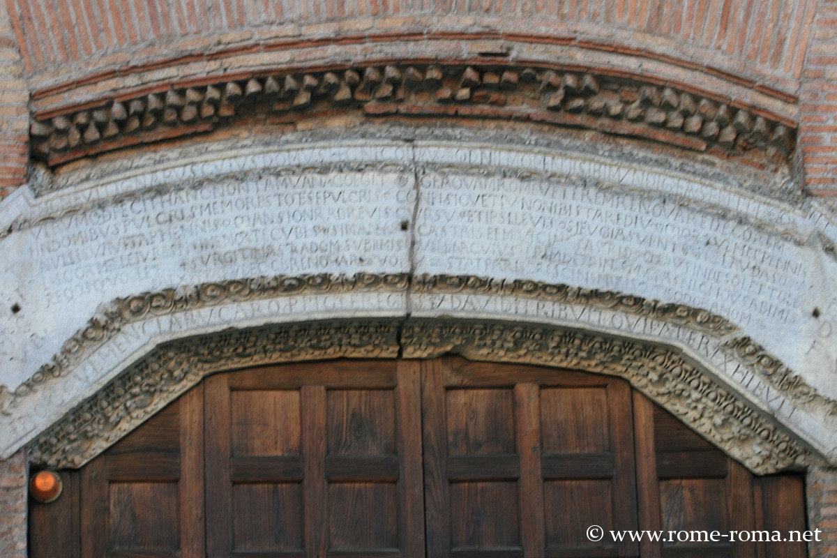 Un long épigraphe en latin, voulu par Niccolò di Crescenzio, est gravé au-dessus du portail et peut être traduit ainsi :